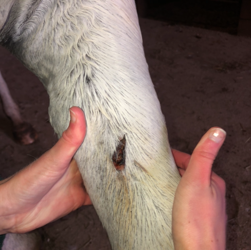 5.) If you know when or how the wound happened: You might not know anything more than “it wasn’t there when I turned her out an hour ago,” and that’s okay- as long as it helps us narrow down how old the wound might be.